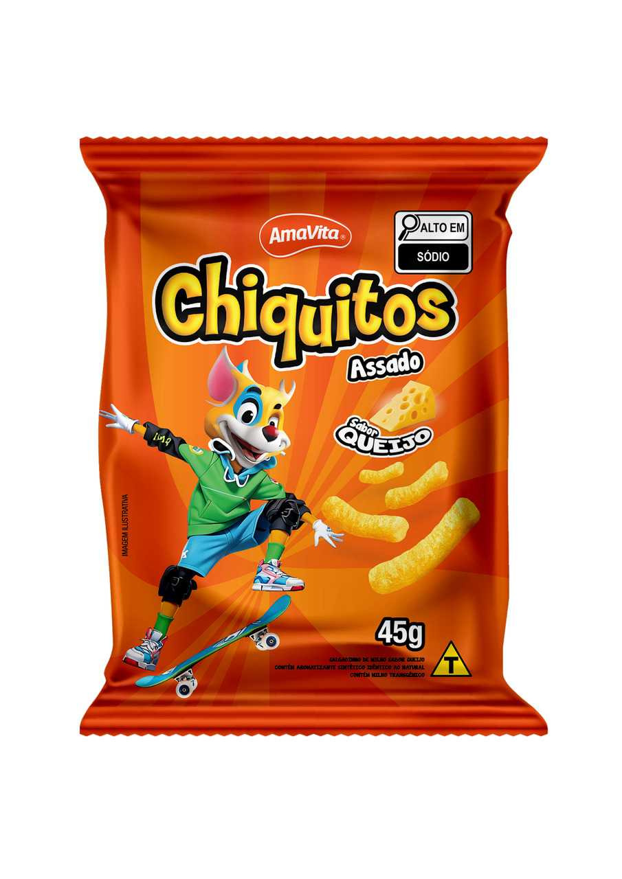 INGREDIENTES: Farinha de Milho Enriquecida com Ferro e Ácido Fólico, Óleo Vegetal de Soja, Sal Micronizado, Aromatizante, Antiumectante Carbonato de Cálcio, Realçador de Sabor Glutamato Monossódico.